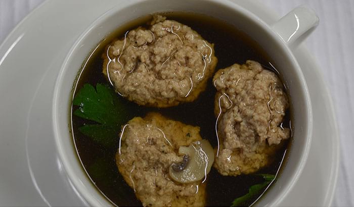 Zum Servieren die Klößchen in die Suppe tun und mit Petersilie verfeinern.
