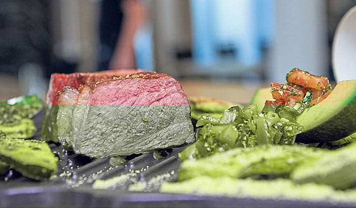 entsteht. Die Steaks bei indirekter Hitze sanft zu Ende garen, bis die Kerntemperatur 58° C hat. Mit Curry-Meersalz abschmecken.