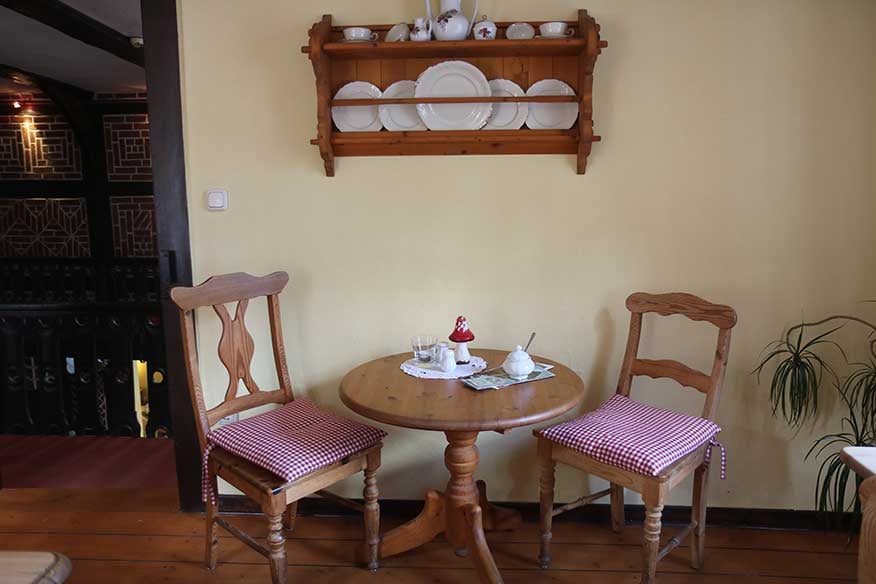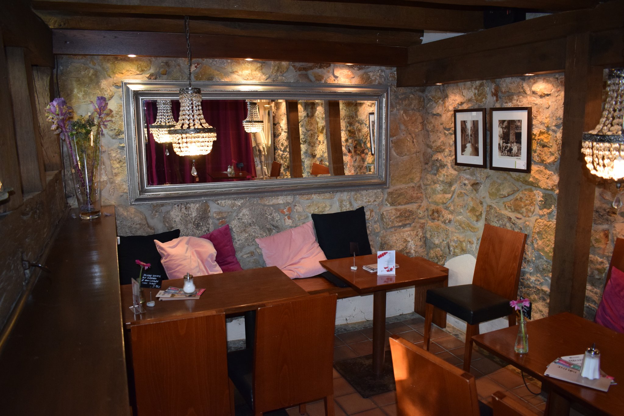 In der kalten Jahreszeit bietet sie unter anderem einen winterlichen Käse-Apfel-Kuchen und Linzer Törtchen an. Ebenso wartet die Kuchentheke mit Nussknackern, Florentinern und Mandelhörnchen auf. Bis zu 32 Personen finden auf den drei Ebenen in dem Café an der Berliner Straße Platz. Das Fachwerk weist auf die lange Geschichte des Gebäudes hin, das aus dem Jahr 1649 stammt. Wem im Winter mehr nach einer wärmenden Suppe oder einem kleinen Mittagstisch ist, wird bei Christine Riegler und ihrem Team ebenfalls fündig. Außerdem gibt es das ganze Jahr über verschiedene Snacks wie Paninis und Bruschetta.