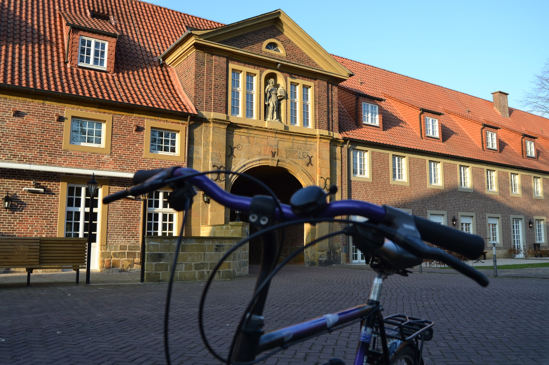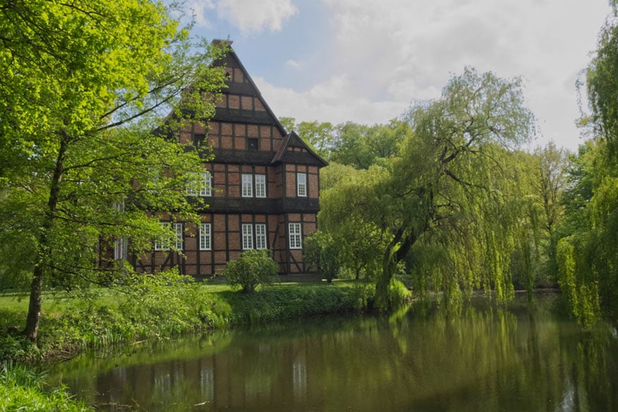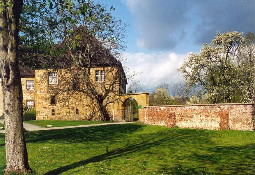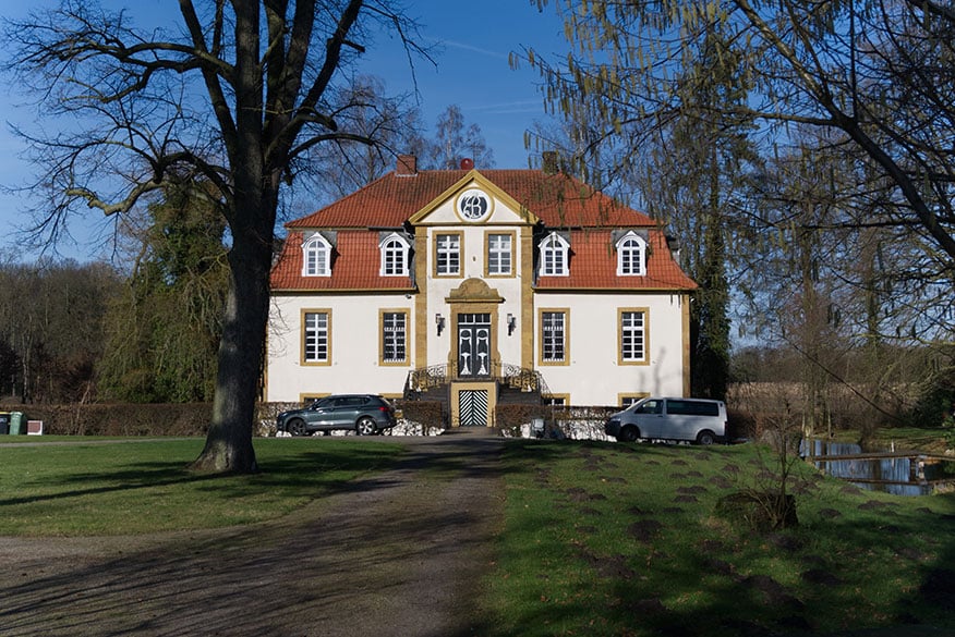Gemütlich in die Pedale tretend gondeln wir dem Ausgangspunkt entgegen. Drei Kilometer vor Batenhorst gönnen wir noch Haus Aussel einen Abstecher. Der ehemalige Burgmannshof entstand Ende des 12. Jahrhunderts. Im 15. und 16. Jahrhundert wechselten die Besitzer mehrfach. Bis 1979 wurde das Gut landwirtschaftlich genutzt. Aktuell ist in einem Gebäude am Gräftenring ein Möbeldesigner ansässig. Die Häuser der Anlage sind nicht zu besichtigen. Wer ruhig verweilt, spürt vielleicht den Geist der „weißen Frau“, einer hungernden Ehebrecherin, und der Kraft, die von ihr ausgeht, sobald die betörende Schöne männliche Gesellschaft sucht … Mehr wird nicht verraten, es geht zurück zum Ausgangspunkt.
