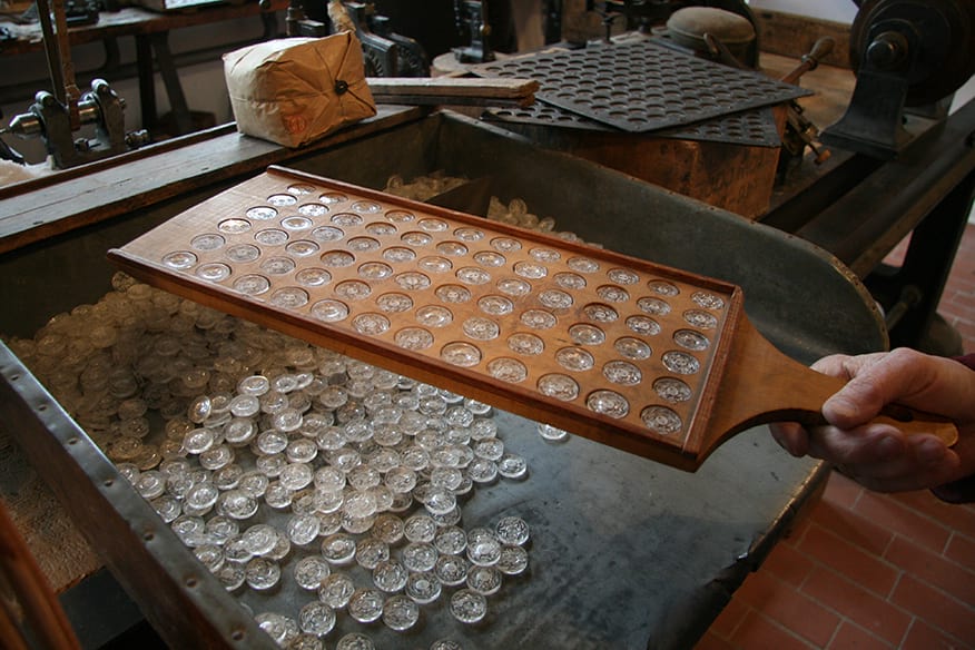 Und wofür kann diese Handarbeit angewendet werden? Klar, um Knöpfe zu vernähen beispielsweise. Um die dreht sich alles in der Verler Knopfmanufaktur, die sich im Geschäftshaus der ehemaligen Druckerei Maasjost befindet. In der Einrichtung können Besucher nicht nur mehr als 100 Jahre alte Technik bestaunen, sondern auch die Knopfherstellung Schritt für Schritt nachvollziehen.