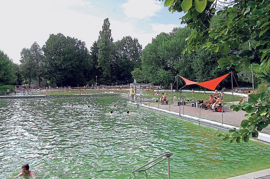 Hier lässt es sich aushalten – vor allem bei hochsommerlichen Temperaturen. Im neu gestalteten Naturfreibad Ennigerloh, ruhig im Grünen gelegen, können Wasserratten ihre Runden in den Becken drehen und Erholungssuchende auf einer der großen Liegewiesen entspannen. Das Bad hat auch eine Fasssauna, eine kleine Elektrosauna mit Platz für bis zu sieben Personen. Für das besondere Urlaubsfeeling stehen Strandkörbe auf der Sanddüne bereit. Für Kinder gibt es auf dem Gelände ein Nichtschwimmerbecken. Es gibt Wasserrutschen und neben Matschspielplatz, Fußballtor und Tischtennisplatte auch eine Kletterwand. Kleinkinder können im eigens für sie angelegten Becken planschen oder im davor aufgeschütteten Sand buddeln.