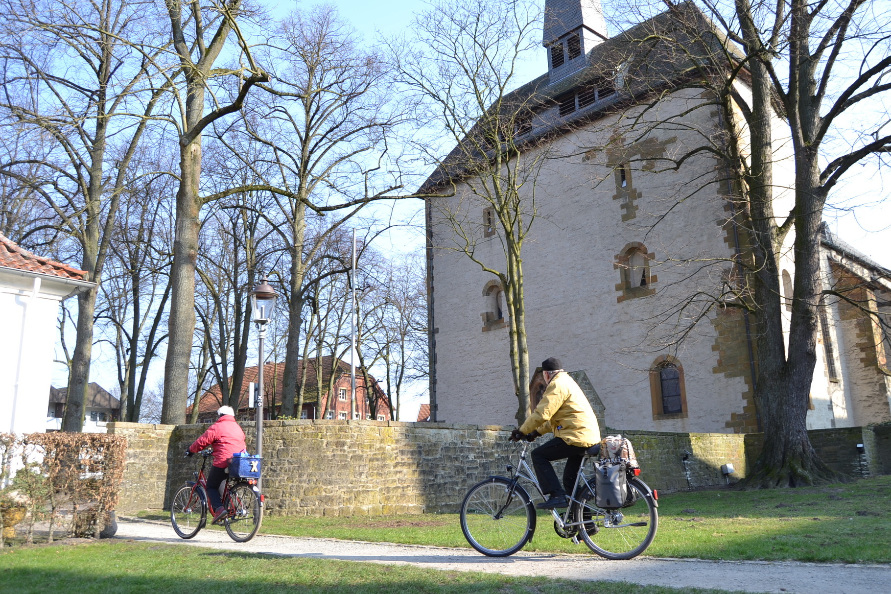 Wir haben die Herz-Jesu-Kirche in Batenhorst als Ausgangspunkt für die Radtour gewählt. Es kann aber an jedem anderen Streckenpunkt eingestiegen werden. Übrigens: Das Gotteshaus in Batenhorst geht auf die Initiative eines Lehrers zurück, der 1905 zu einer Versammlung lud. Dort sollte ein Kapellenneubau diskutiert werden. Am Ende der Zusammenkunft stand die Gründung eines Kirchenbauvereins. Kurz darauf hatte den Verein Spenden in Höhe von 13 000 Euro erreicht. 1908 wurde die Herz-Jesu-Kirche geweiht.
