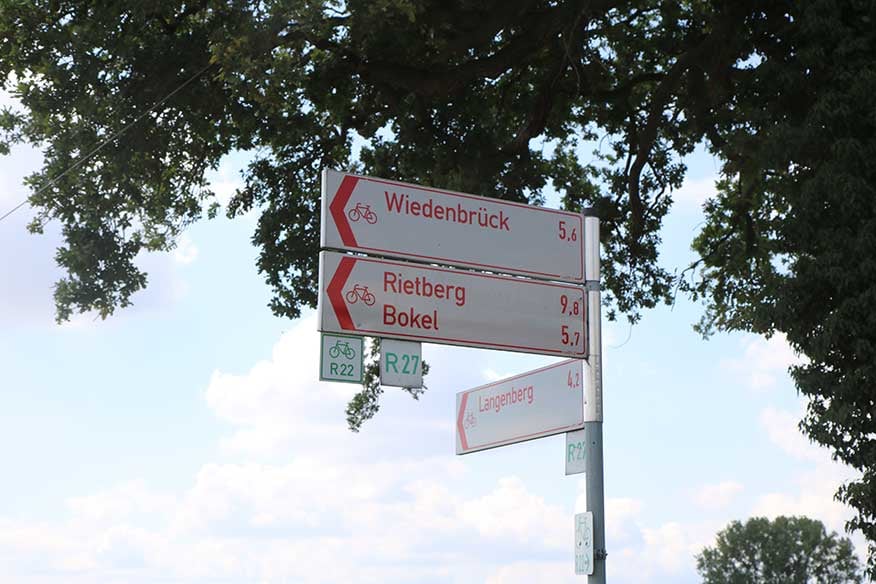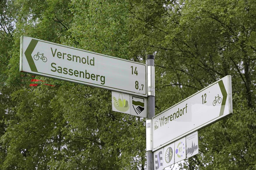 Die leuchtend gelben Schilder des Werseradwegs weisen den Weg. Außerdem wird inhaltlich einiges geboten. Über kulturelle und landschaftliche Besonderheiten informieren diverse Tafeln. Die hierzulande-Tour beginnt in Ahlen mit der Nummer 15 und endet in Rheda-Wiedenbrück an der ersten Tafel. An zwei Stationen geht es zudem hoch hinaus: In Beckum und Stromberg ermöglichen Aussichtstürme den Blick über die Landschaft.