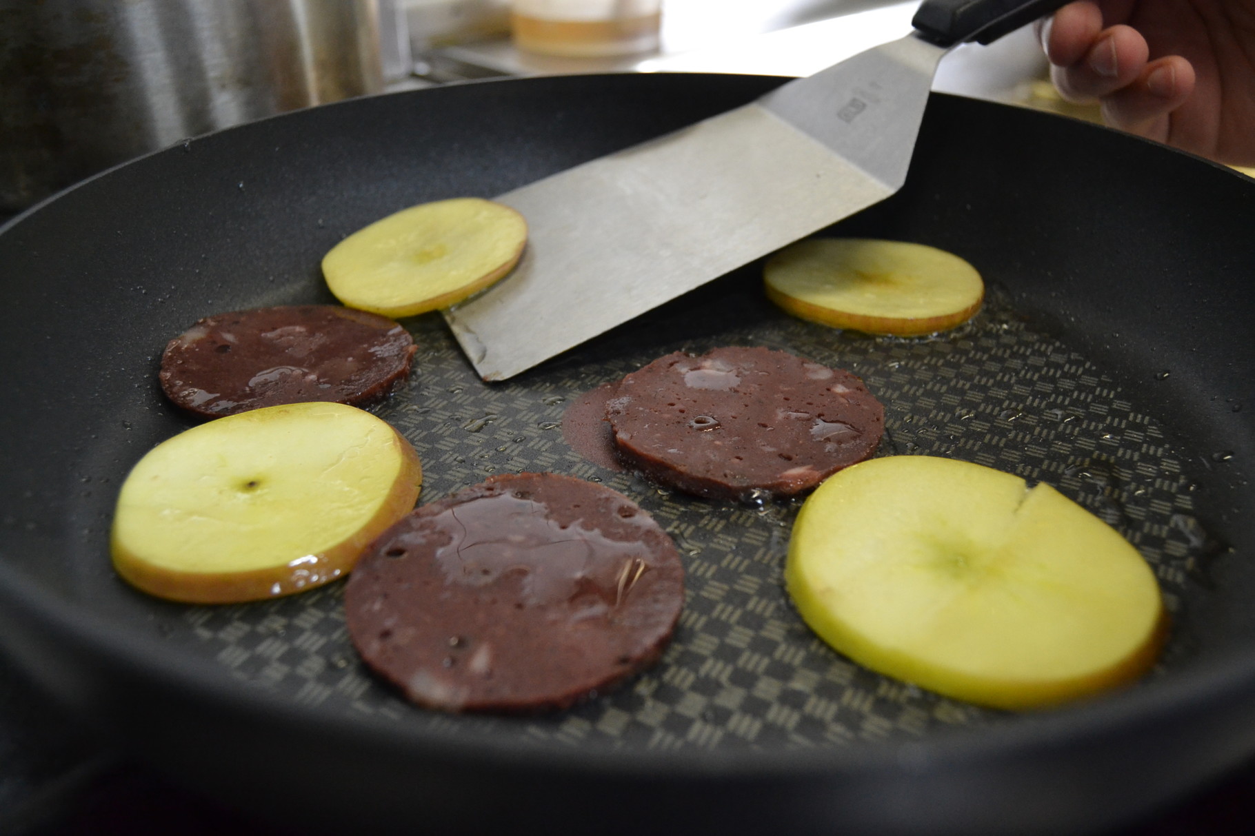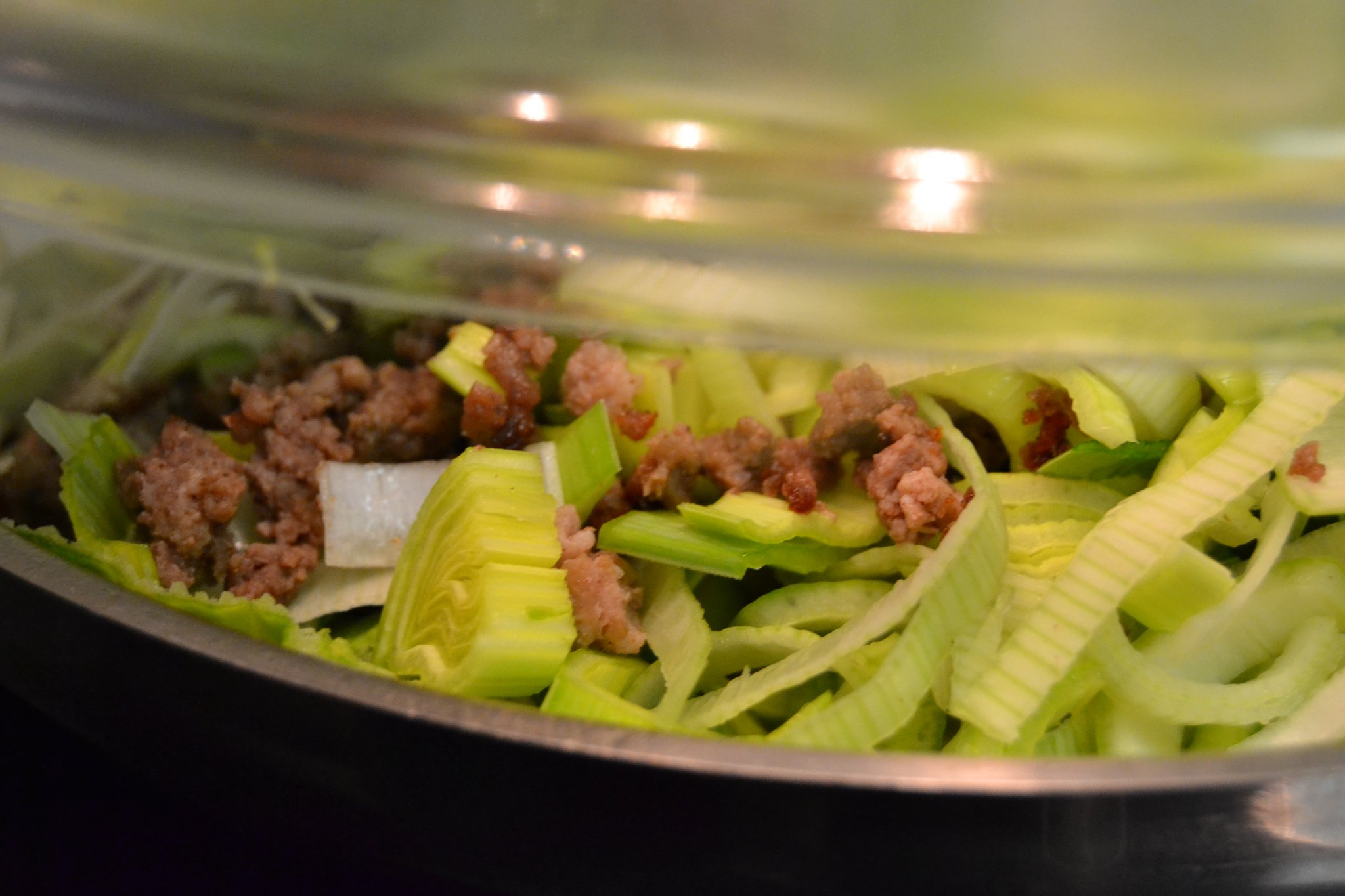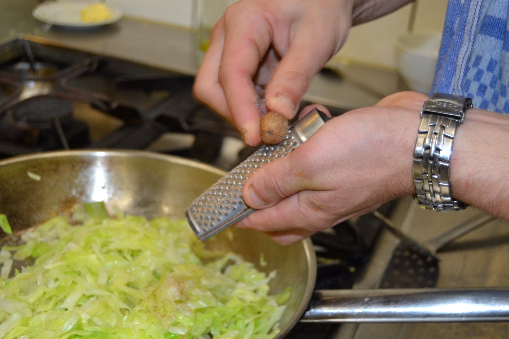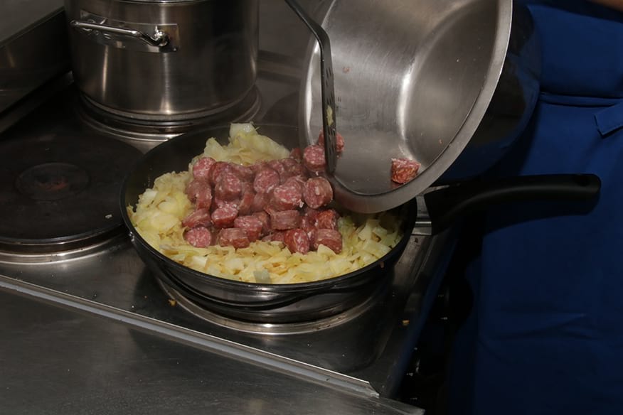 Wenig später ist es Zeit für die rustikale Hauptspeise: Wirsing-Kartoffel-Pfanne mit Mettenden. Fast alle