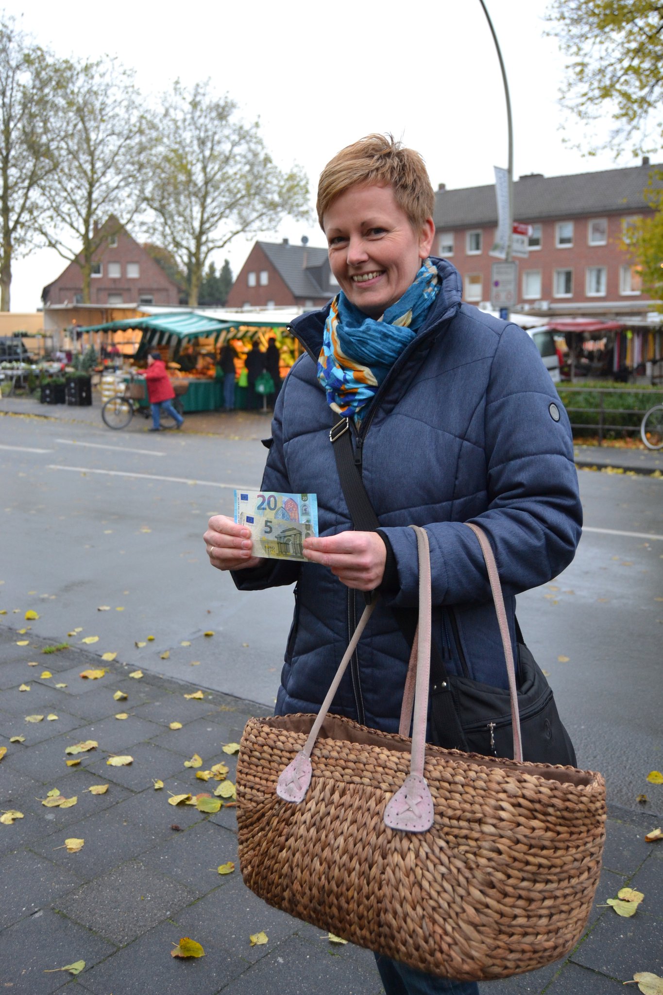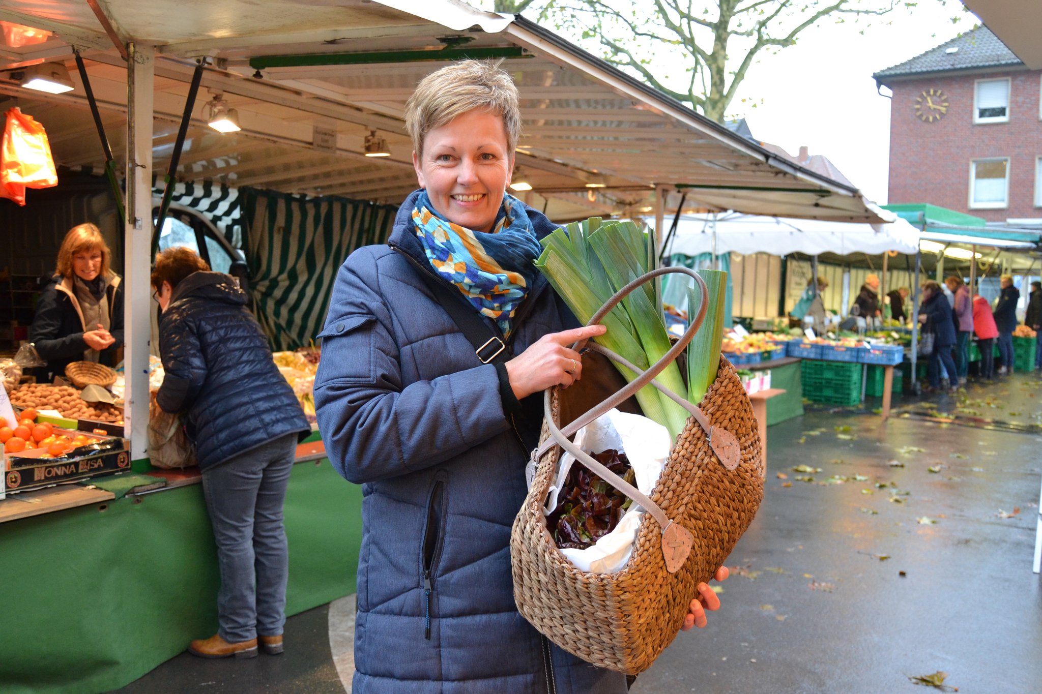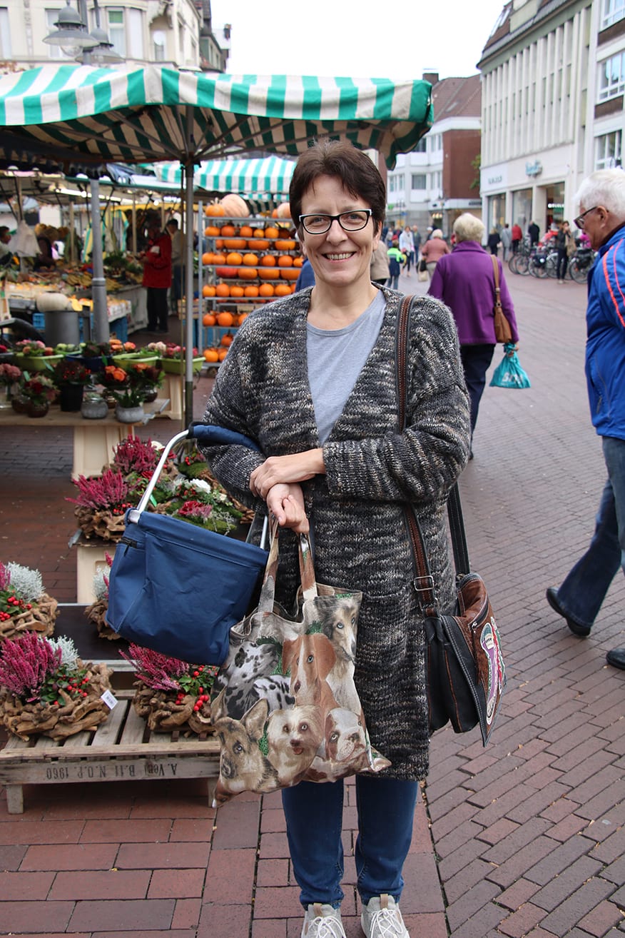 Claudia Haag lässt ihren Blick über den Gütersloher Wochenmarkt schweifen. Hier ist alles so groß, es gibt so viel Auswahl. Von ihrem heimischen Wochenmarkt, dem in Rheda, kennt sie das anders.