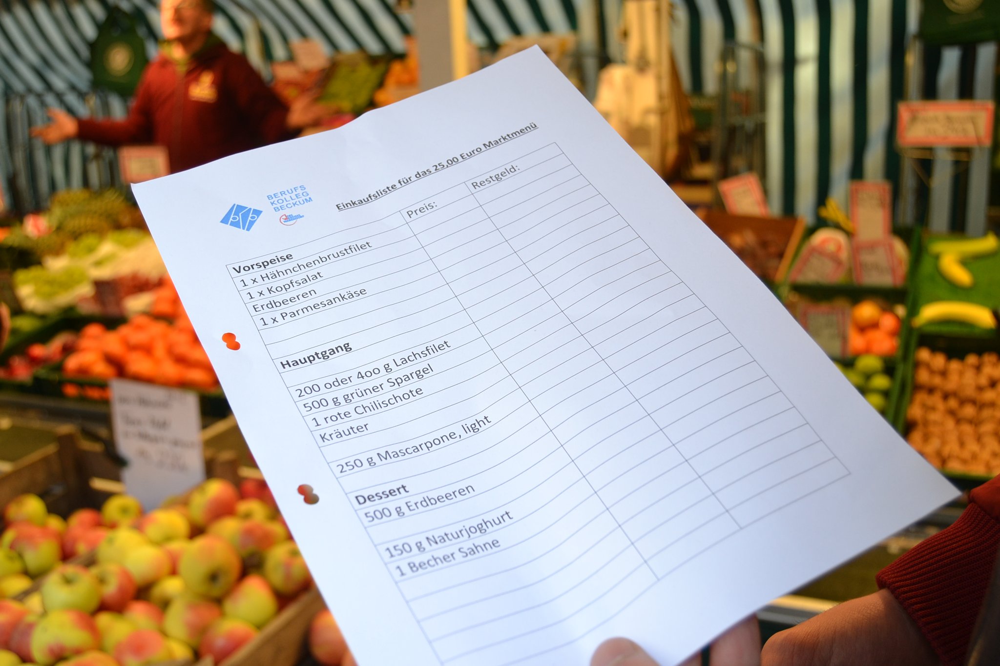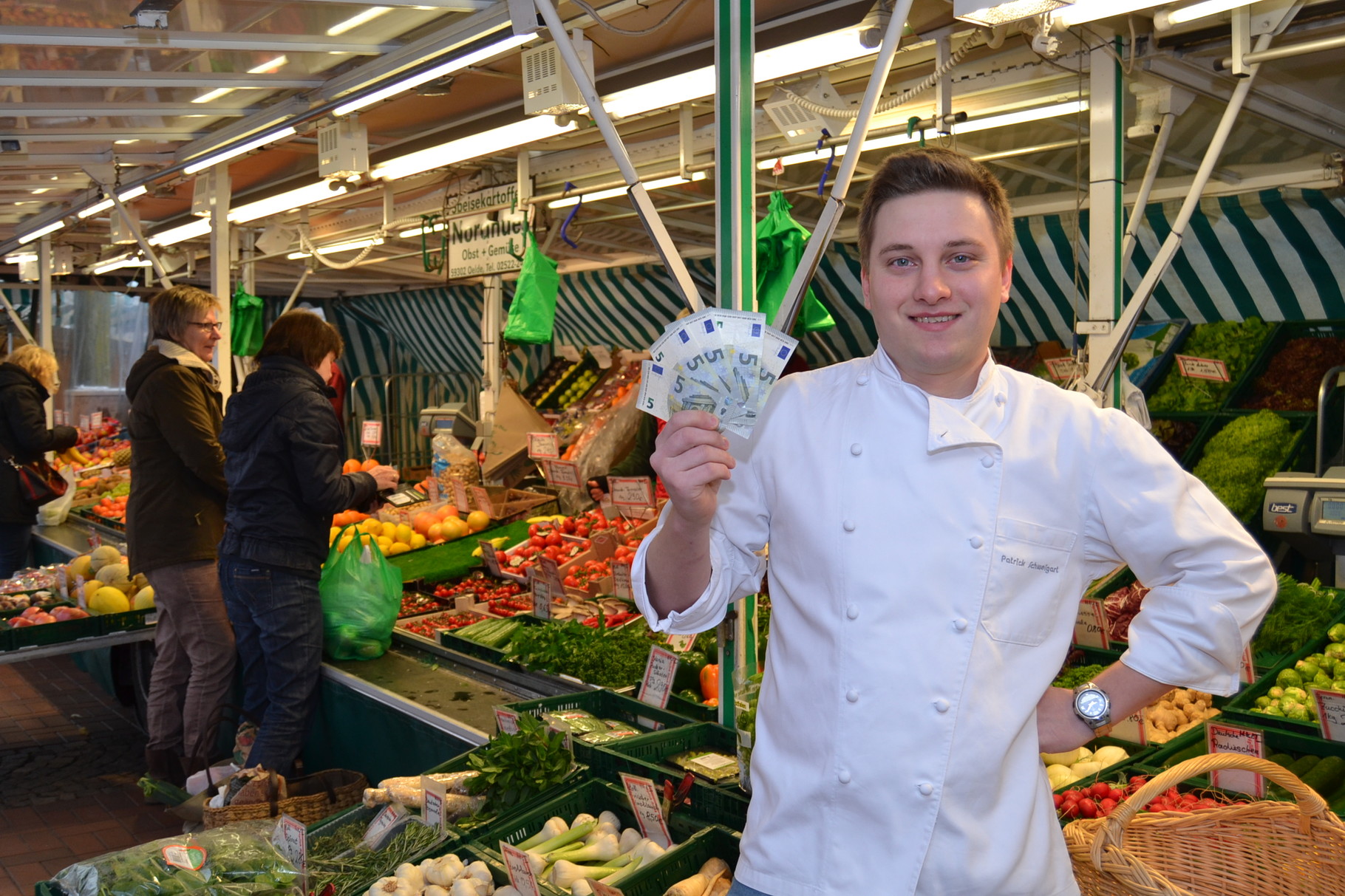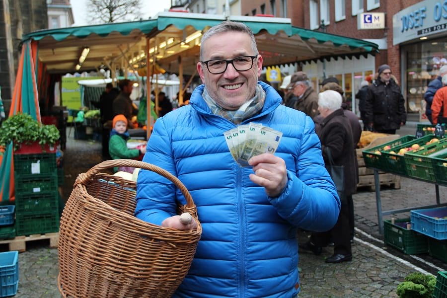 Pascal Uhlmann hat sich der Aufgabe gestellt und auf dem Warendorfer Wochenmarkt für sein 3-Gänge-Menü eingekauft.