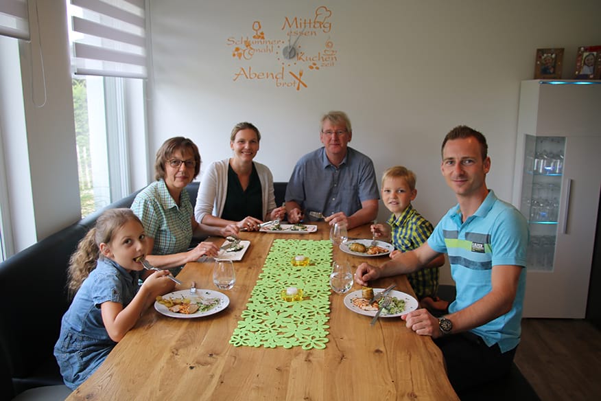 Nach dem Essen sitzt die Familie zufrieden um den Küchentisch, pappsatt. Klar, ein bisschen Zeit nimmt das Kochen für eine ganze Familie schon in Anspruch. „Das ist es wert, Kochen ist unsere Leidenschaft“, sagt Maik.