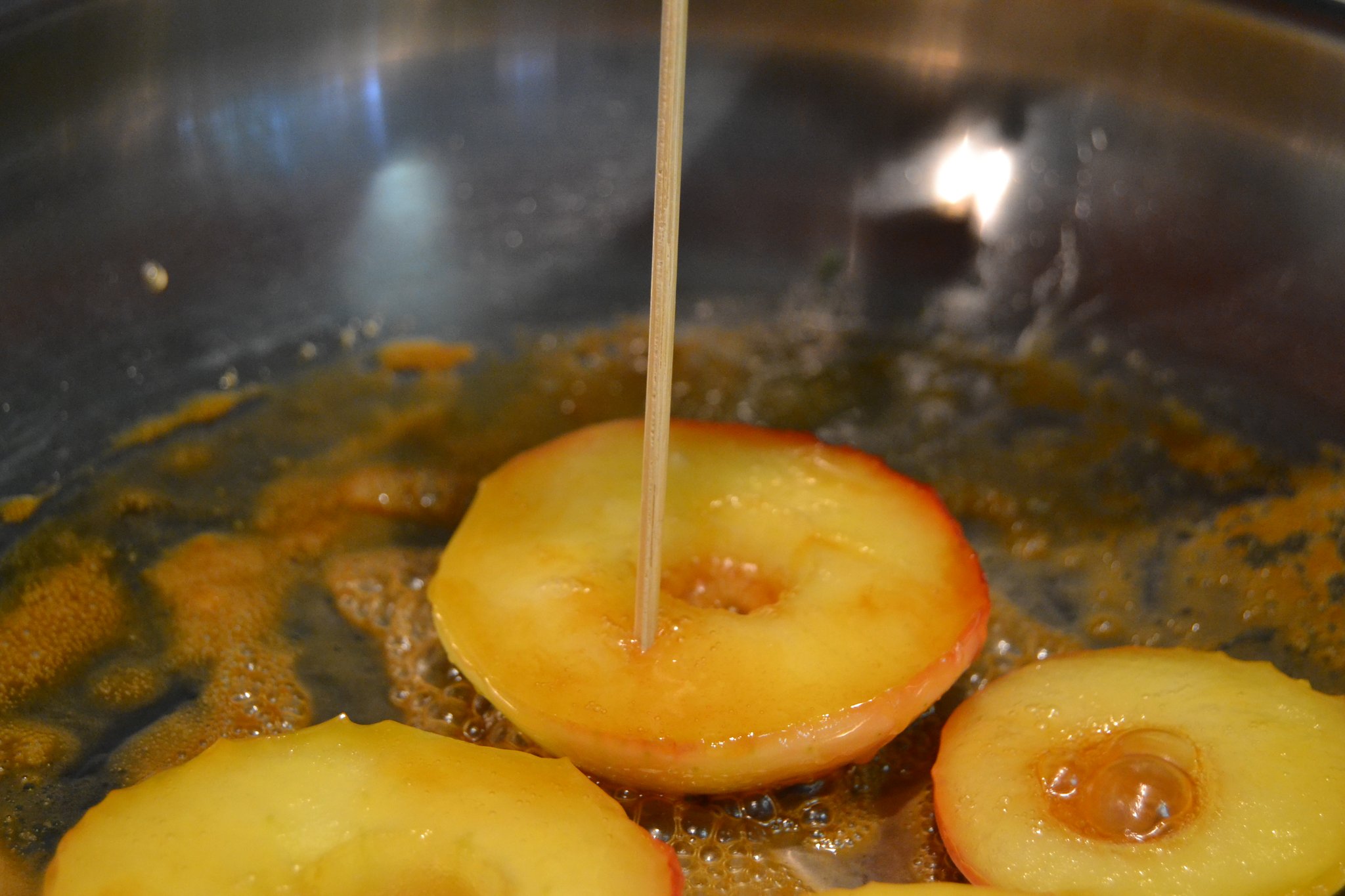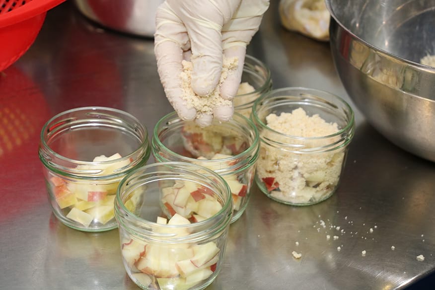 Jetzt bereitet sie die Nachspeise zu. Apple-Crumble, übersetzt bedeutet das mit Streuseln überbackene Äpfel. Haag schneidet die Früchte
