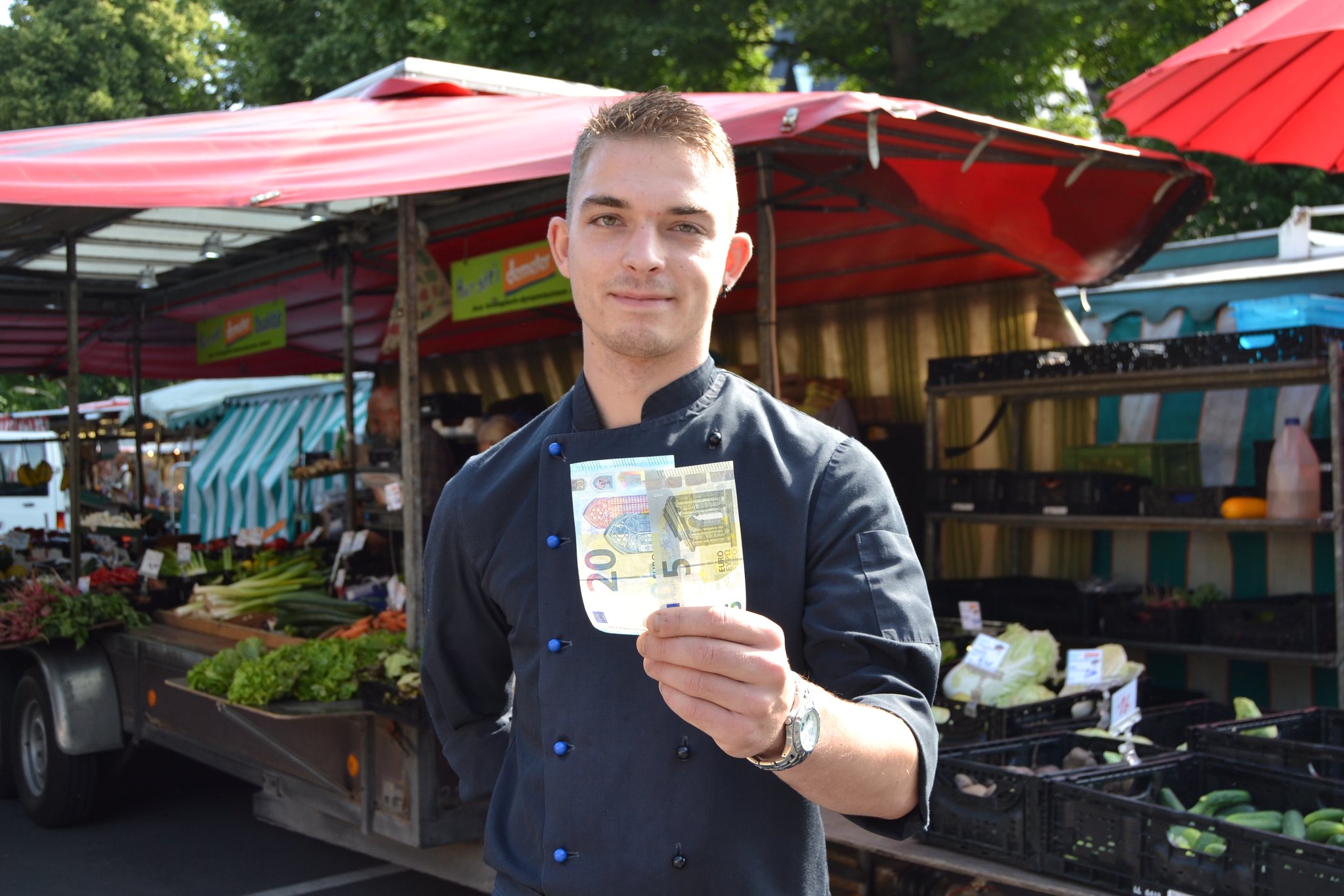 Für ein Budget von nur 25 Euro ein 3-Gänge-Menü für 4 Personen zubereiten, einzig und allein mit frischen Zutaten vom Wochenmarkt - dieser Herausforderung stellen sich Köche aus der Region in