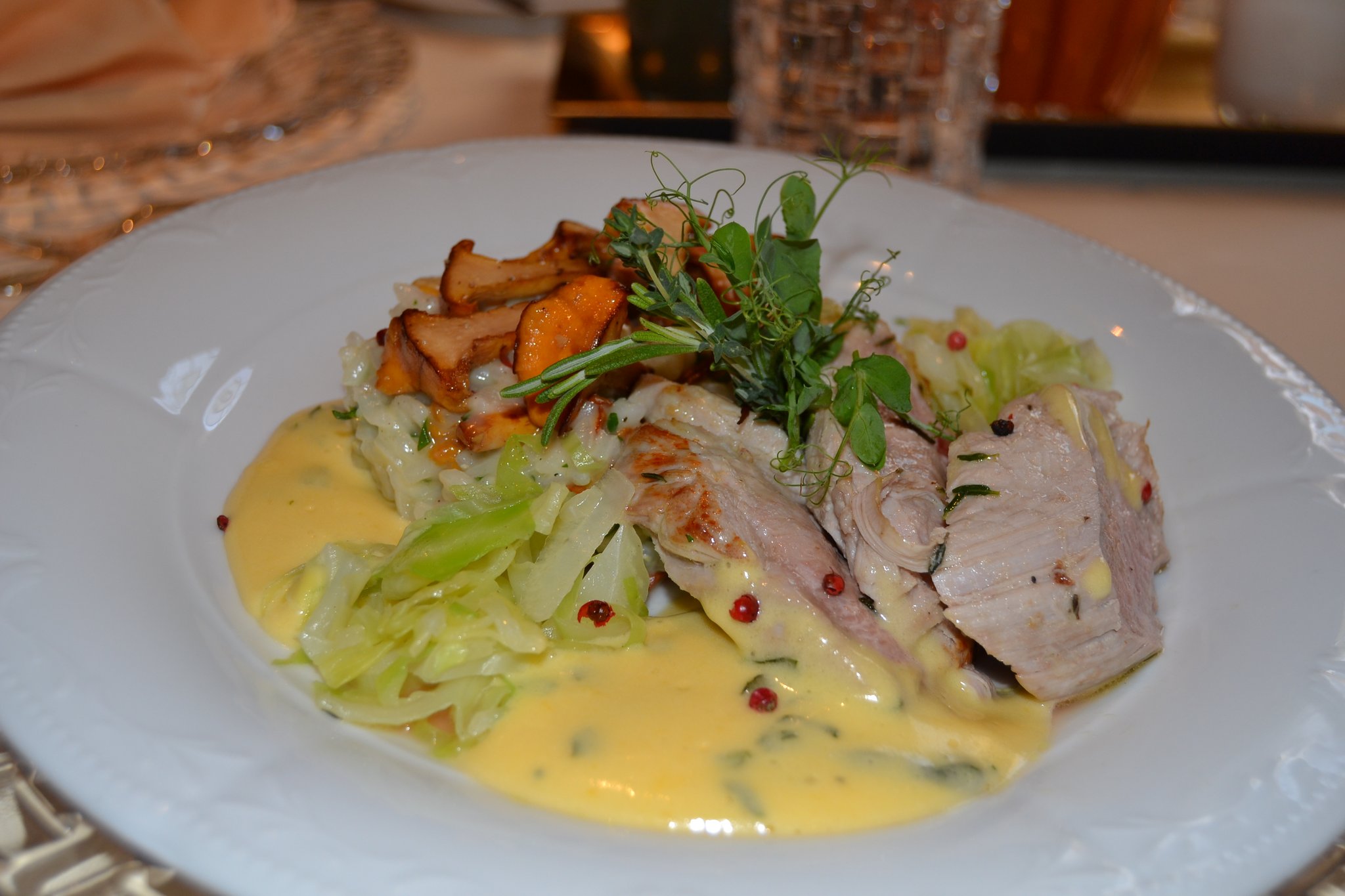 geht es mit einem saftigen Schweinefilet, dazu gibt es ein Pfifferling-Risotto und Spitzkohlgemüse. Abgerundet