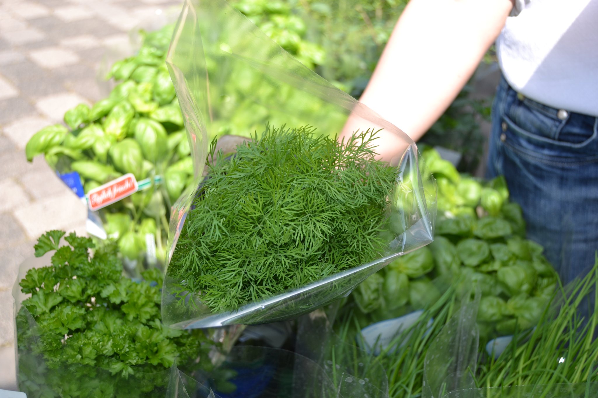 In der Gütersloher Suppenküche gibt Haag dreimal in der Woche Essen aus, an Kinder und Erwachsene. Sie ist die hauswirtschaftliche Leitung der Einrichtung. Nach einem Besuch beim Fleischstand hat Haag bereits fast alles, was sie für das Drei-Gänge-Menü braucht. Nur noch kurz Kräuter besorgen, es sind immerhin noch fünf Euro übrig. Ein bisschen Petersilie, ein bisschen Schnittlauch. „Zum Garnieren“, sagt Haag.