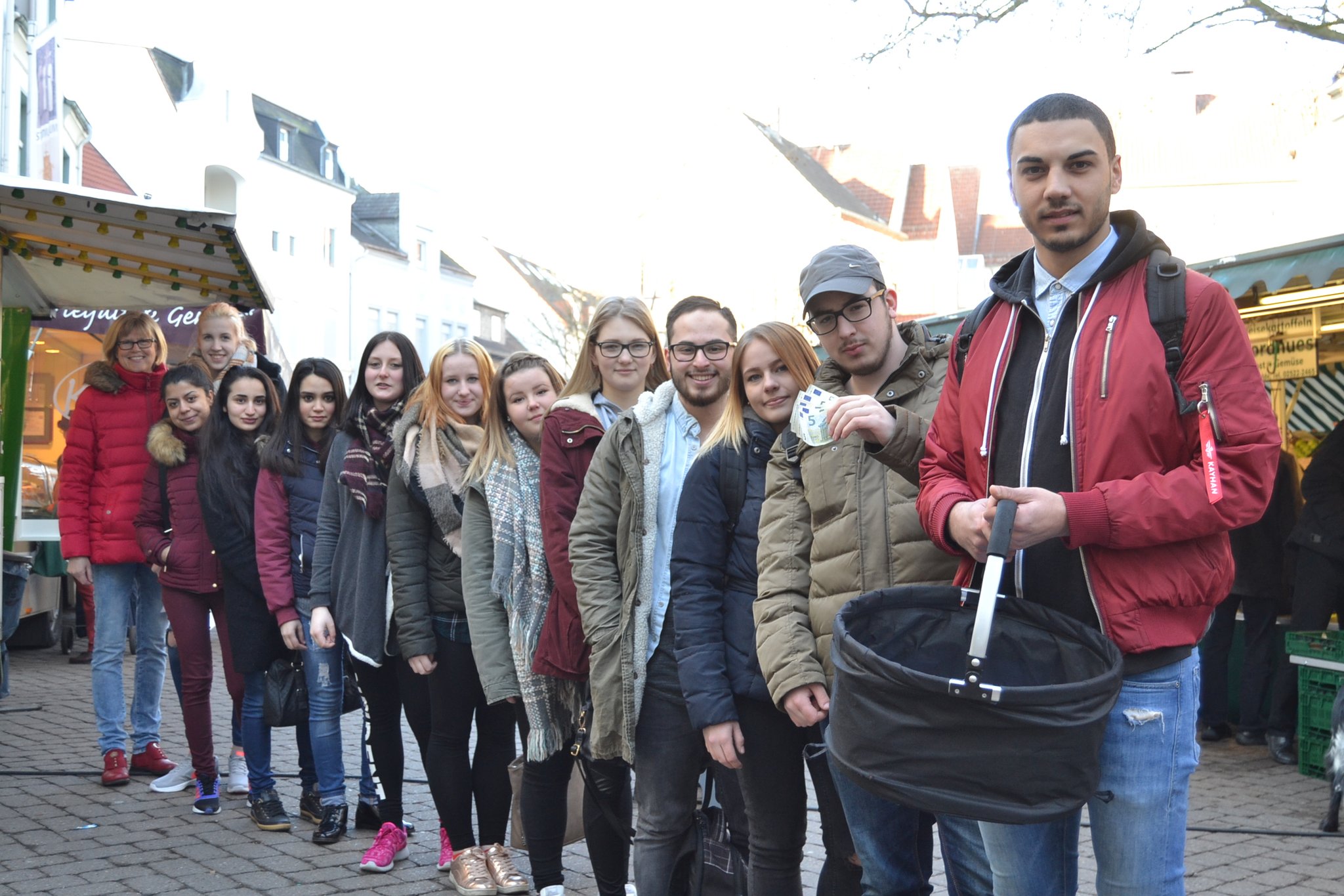 Die Drei gehen durch die Stadt, hin zu den Marktständen, die entlang der Fußgänger-Zone aufgebaut sind. Kleines Problem: Die Jungs haben keinen Einkaufszettel dabei. „Was kaufen wir denn überhaupt ein? Und was kochen wir?“, fragt Fischer. Irgendetwas mit Fleisch soll es sein. „Steak wäre super!“, meint Aßmann. Kirchner nickt, antwortet: „Aber Fleisch ist relativ teuer. Dafür reicht das Geld bestimmt nicht.“