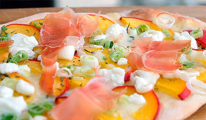 Pfirsich-Pizza mit Schinken