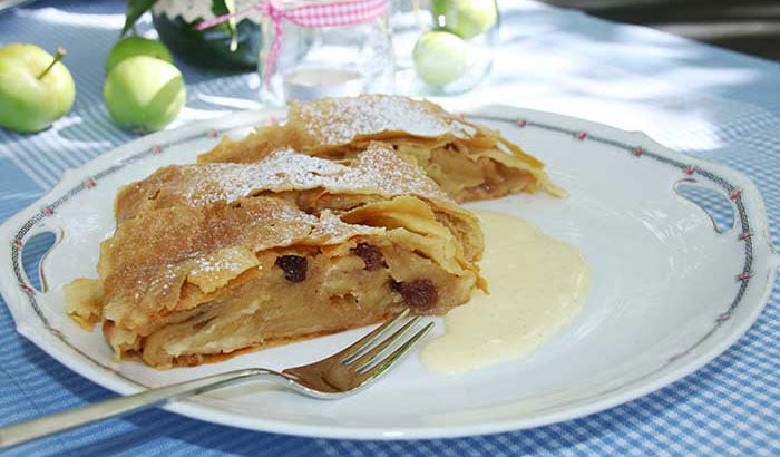 Klassischer Apfelstrudel mit Vanillesoße