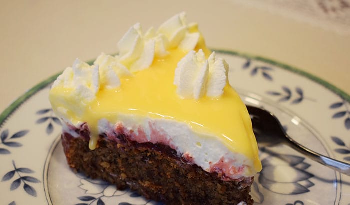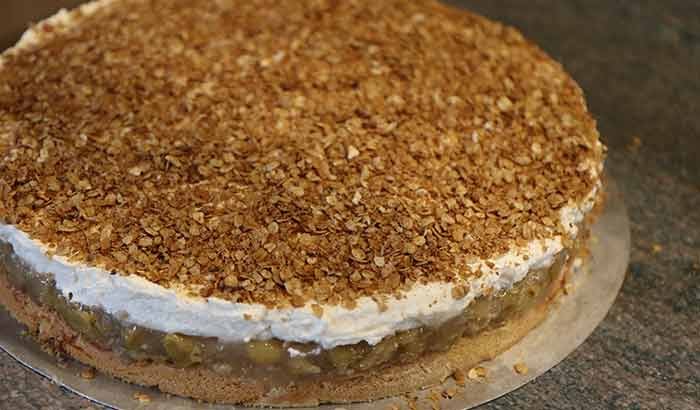 Unser Kuchen der Saison bringt die leicht saure Note der Stachelbeeren mit geröstetem Haferflocken-Knusper und Sahnecreme zusammen.