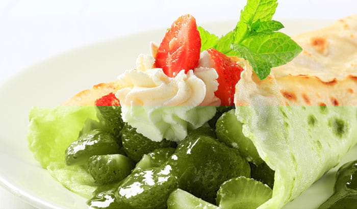 Pistaziencrêpes mit Erdbeeren