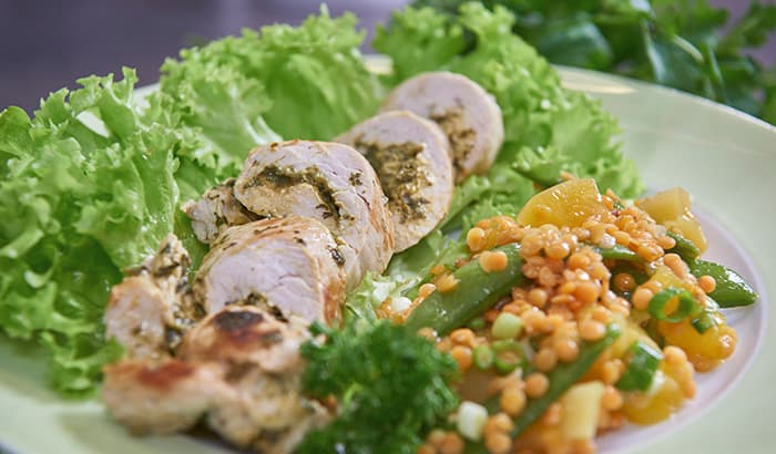 Nicht nur farblich ein Hingucker, sondern auch geschmacklich toll ist das indisch anmutende Linsencurry. Kokosmilch, Weißwein und Orangensaft liefern Geschmack.