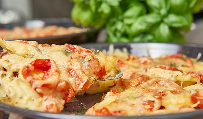Pizzawaffeln mit getrockneten Tomaten und Schinken