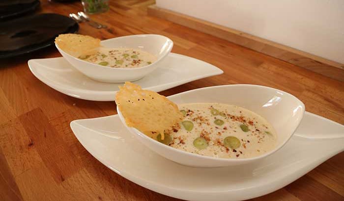 Mit Parmesanplätzchen serviert ein gelungener Auftakt für ein Menü.