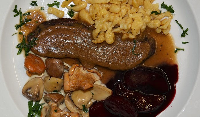 Rehrücken mit Käsespätzle